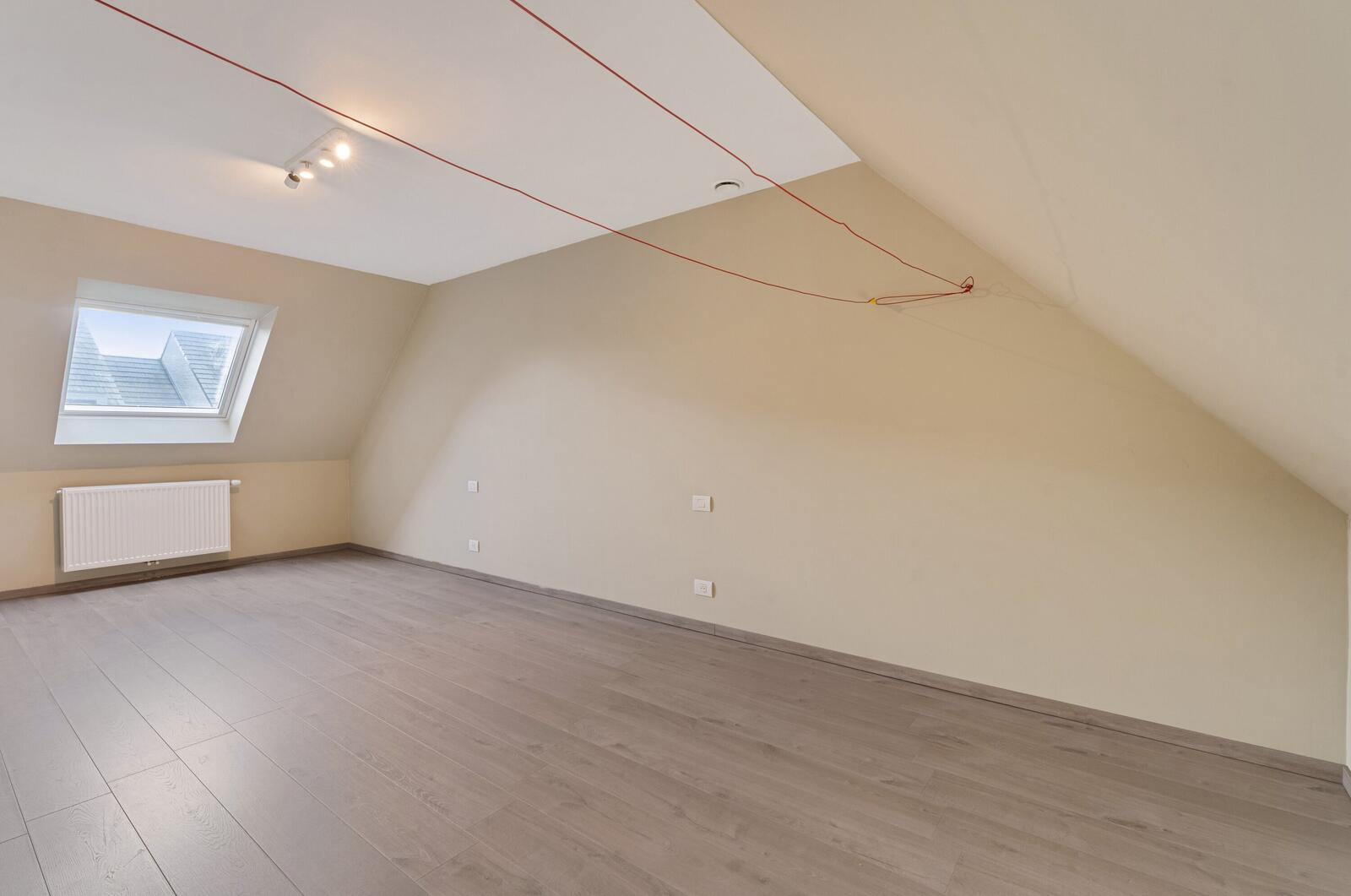 Op het eerste verdiep zijn er drie ruime slaapkamers en een badkamer met ligbad en douche voorzien. Er is nog een zolderverdieping die gebruikt kan worden als bergplaats.