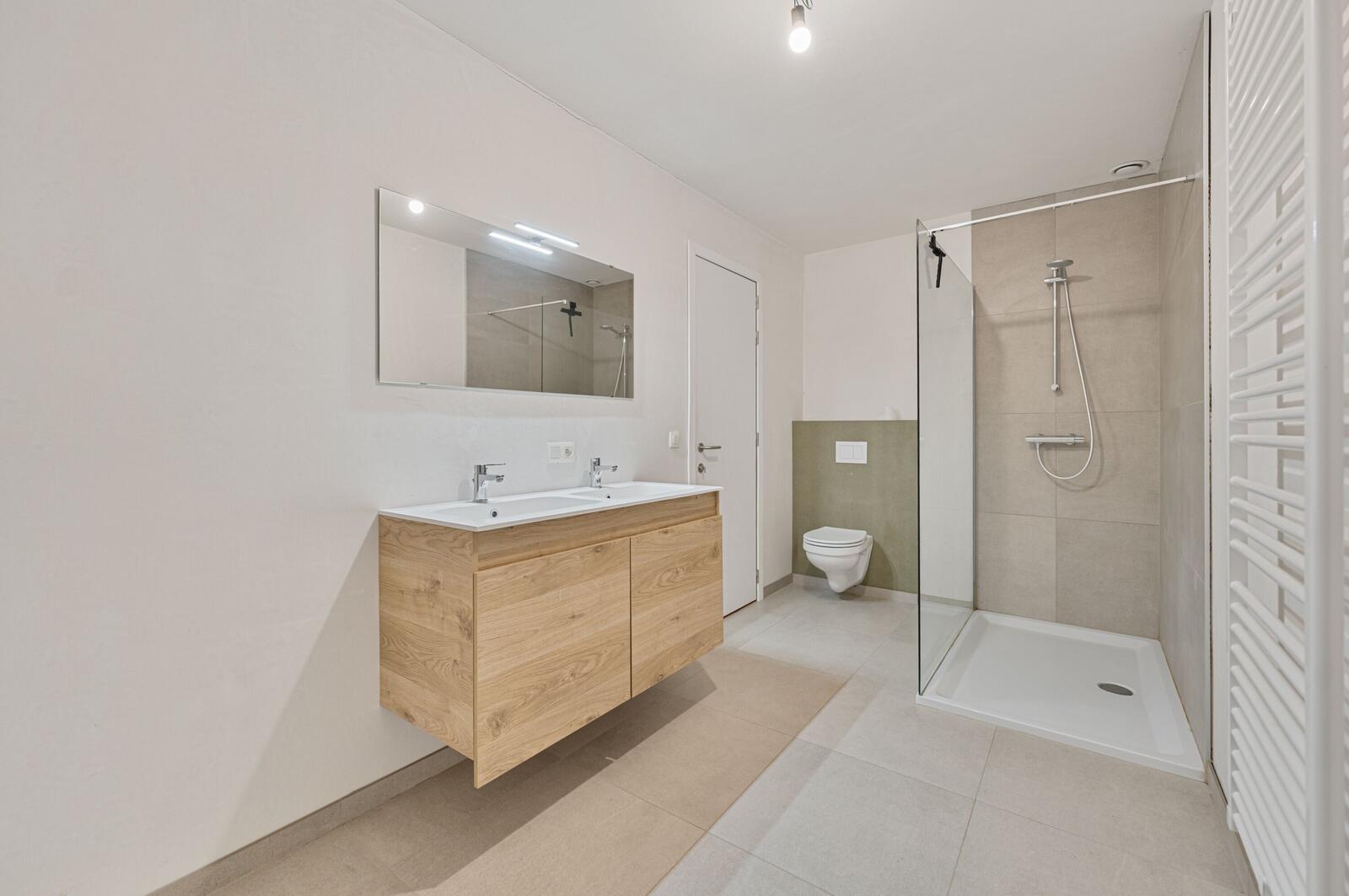 Op het eerste verdiep zijn er 3 slaapkamers met een ruime badkamer met een inloopdouche, toilet en dubbele lavabo.