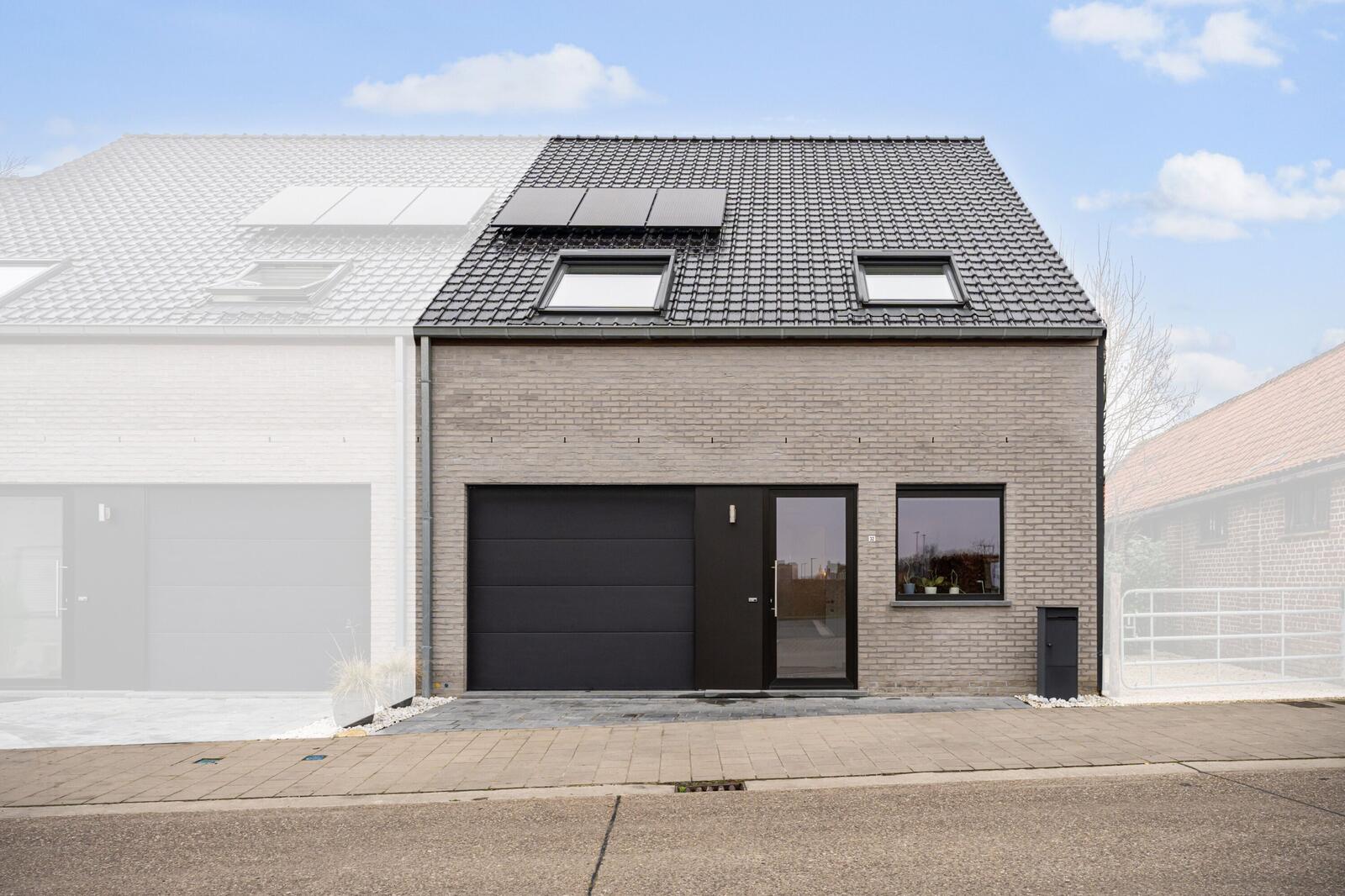De gelijkvloerse verdieping beschikt over een hal met aansluitend de ruime woonkamer met uitgeruste open keuken, de ruime berging en toegang tot het apart toilet en de garage.