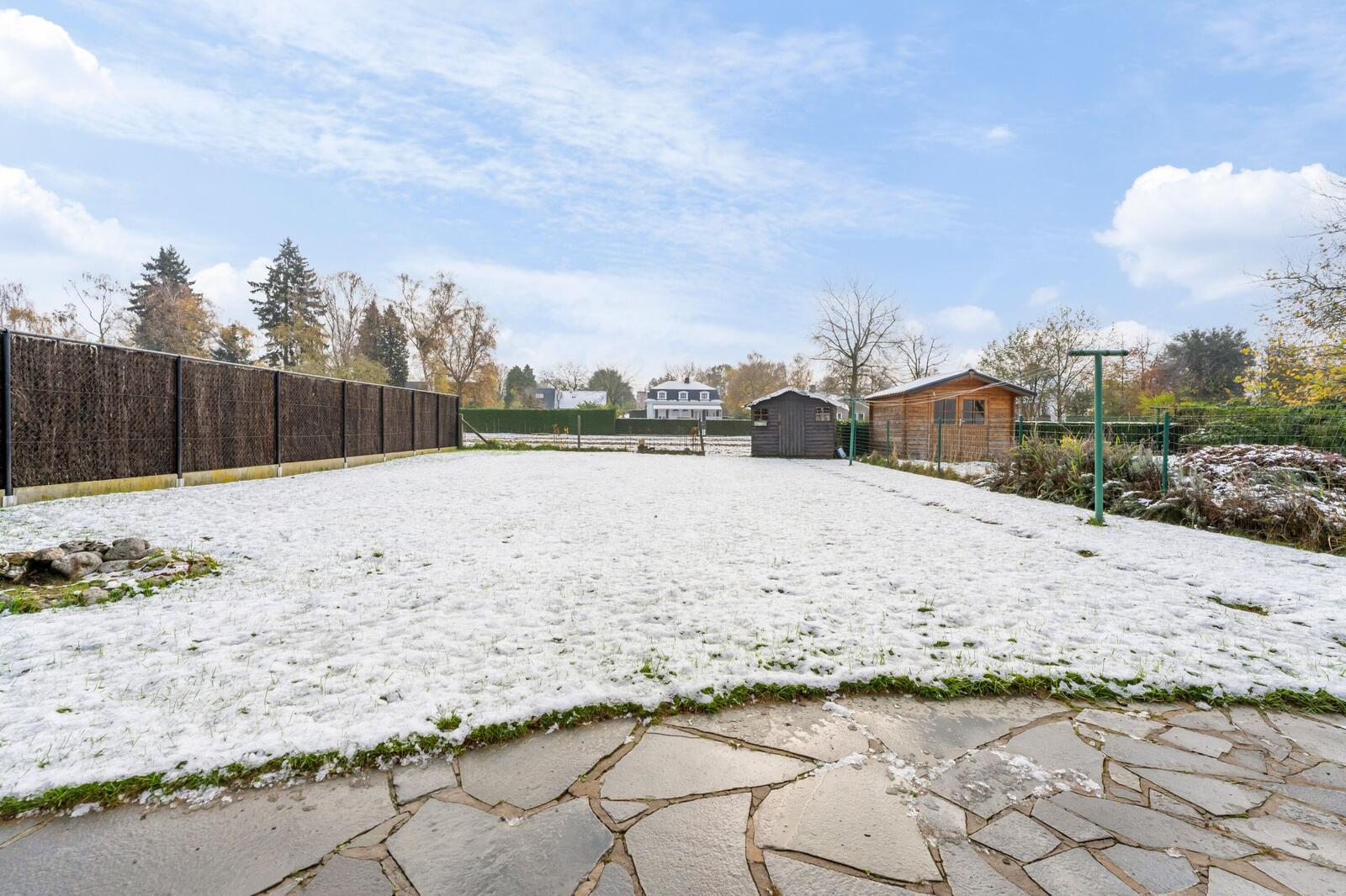 Op het gelijkvloers vind je een gezellige en lichtrijke leefruimte met een prachtig uitzicht op de grote, groene tuin. Aansluitend ligt de volledig uitgeruste keuken, eveneens met tuinzicht. Vanuit de keuken heb je directe toegang tot de garage en kelder.