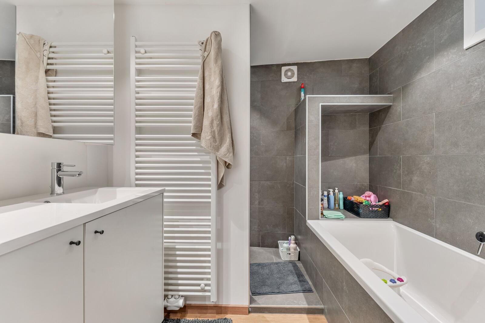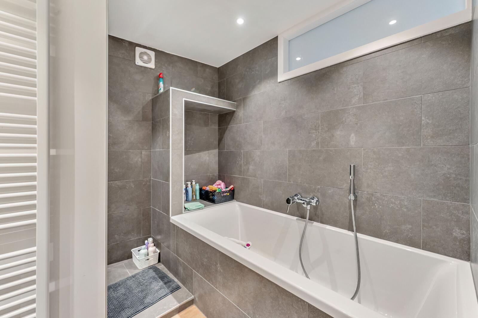Op de tweede verdieping bevinden zich twee slaapkamers, beide uitgerust met inbouwkasten, een tweede apart toilet en een stijlvolle badkamer met inloopdouche, ligbad en lavabomeubel.