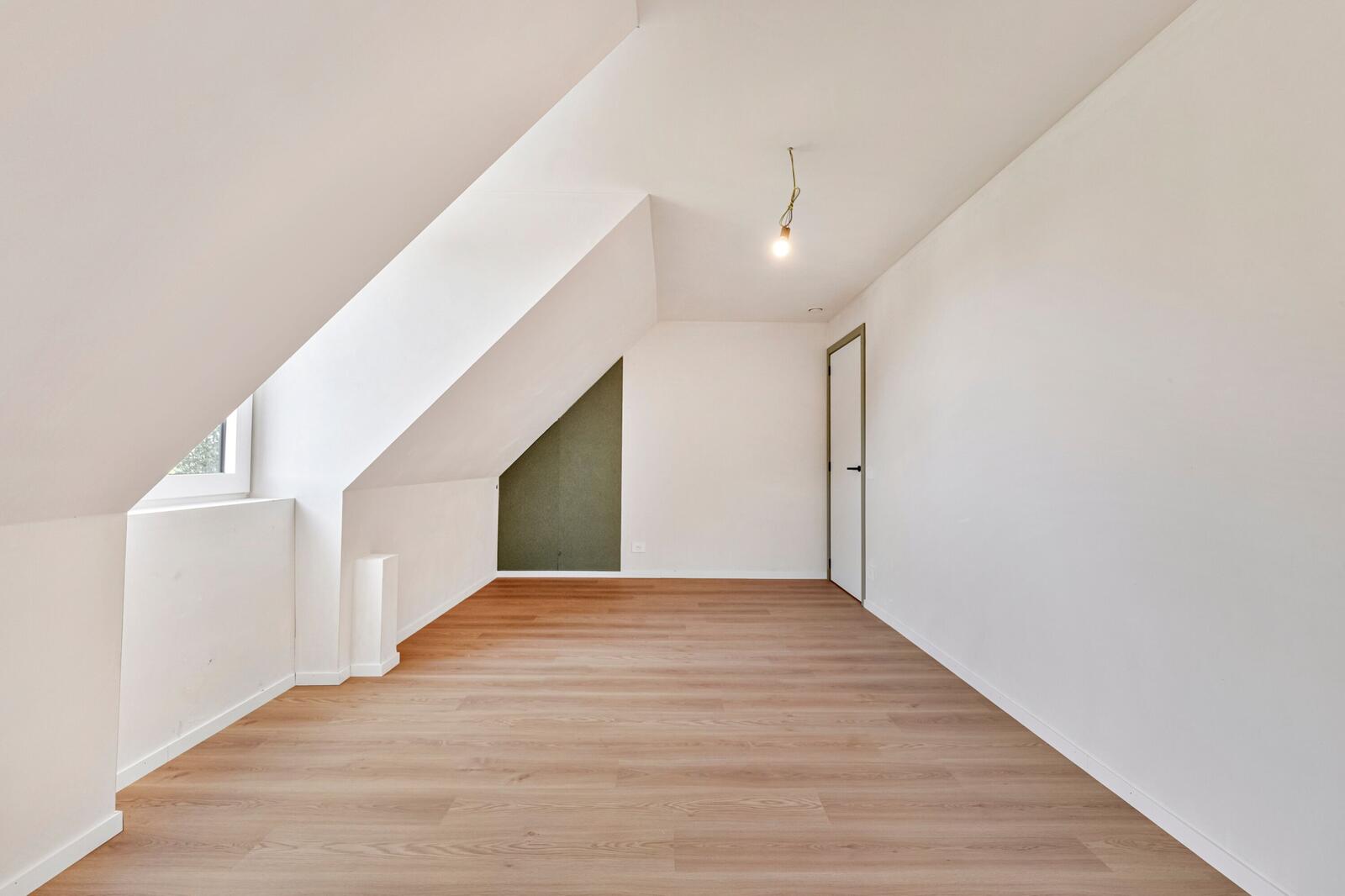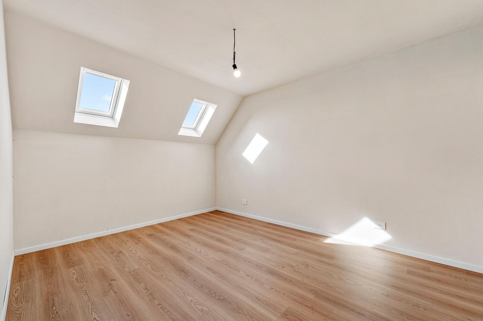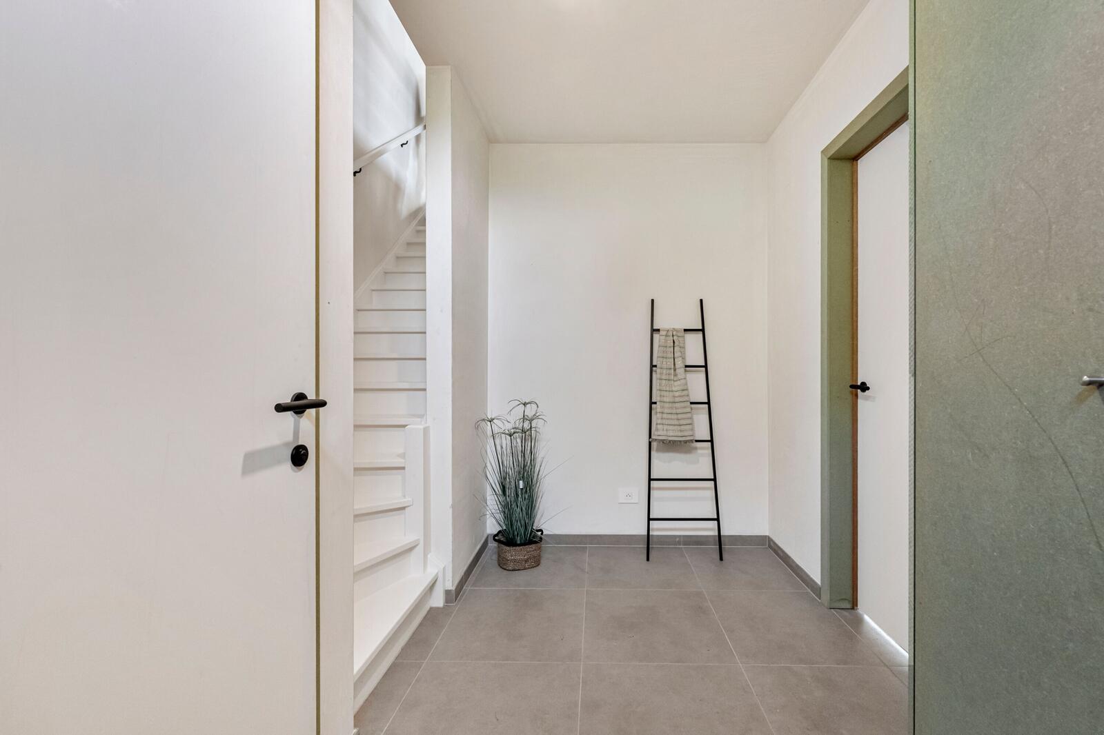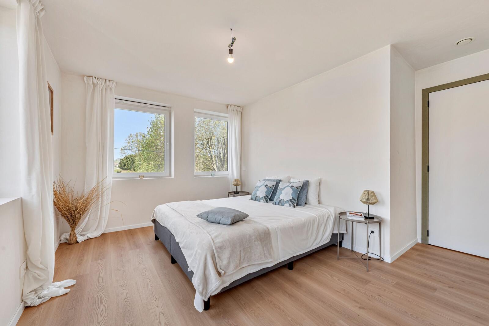De grote woon-eetkamer beschikt over veel natuurlijk lichtinval, daarnaast kan je een open keuken met keukeneiland terugvinden. Ook heb je een praktische berging vlakbij.