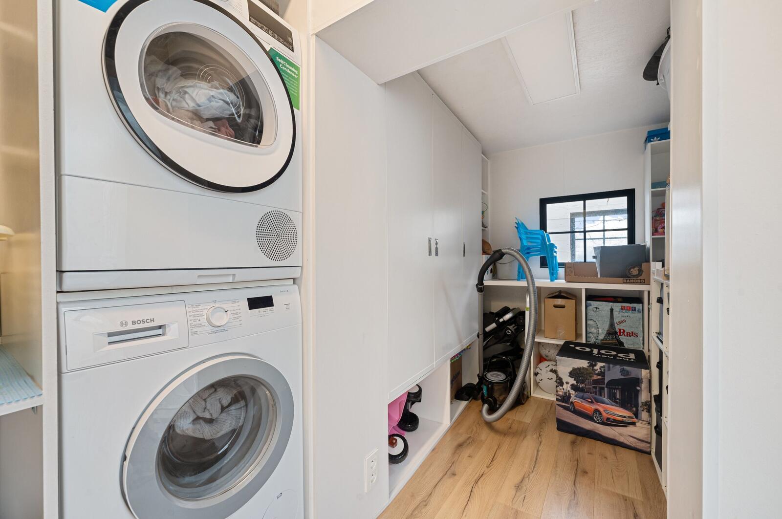 Daarnaast hebben we ook nog een extra berging/wasplaats en een badkamer met ligbad, douche, toilet en wastafel.
