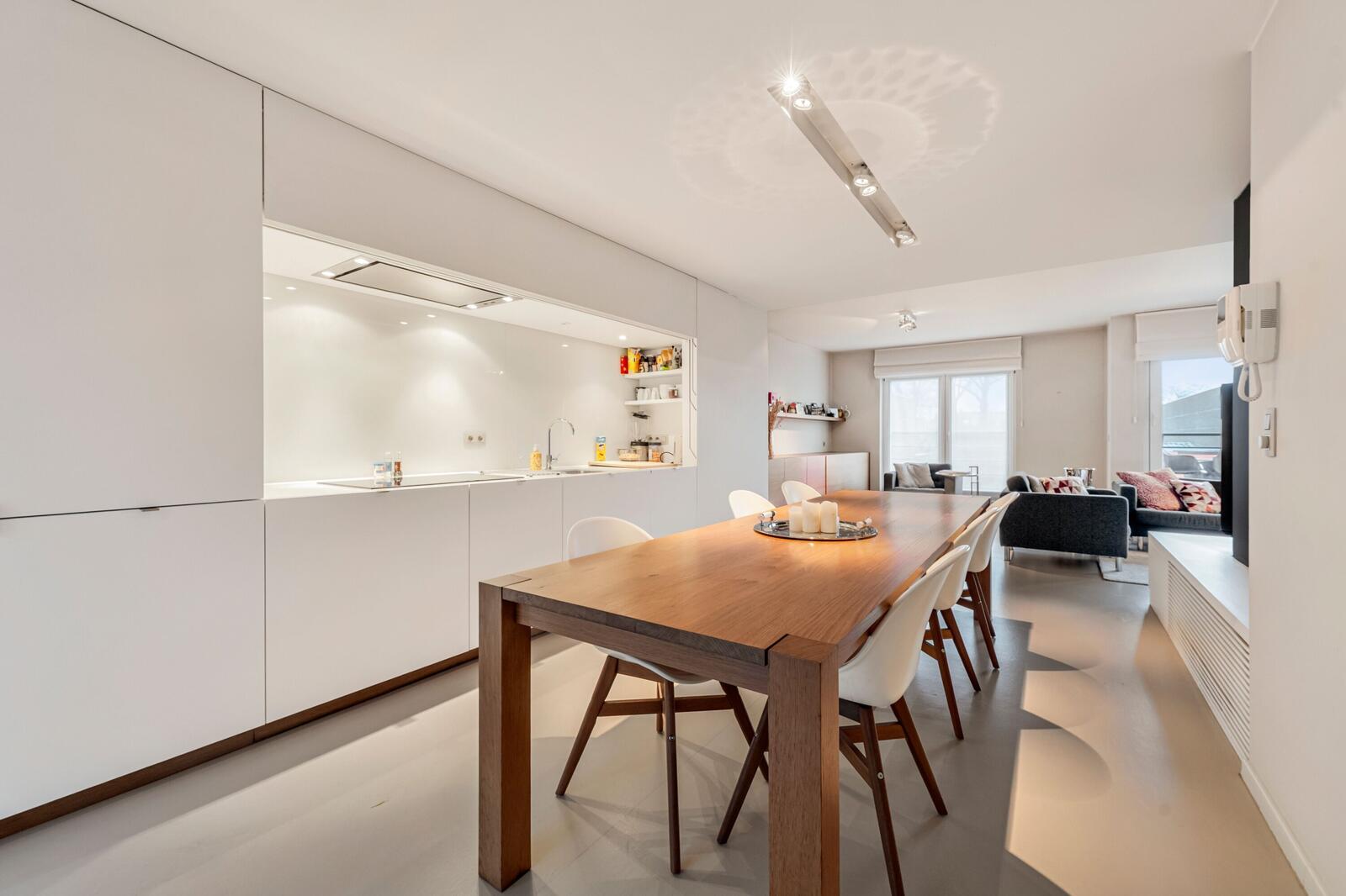 Aansluitend bevindt zich de stijlvolle, volledig ingerichte keuken met alle nodige toestellen. Vanuit de keuken heb je toegang tot een handige berging/wasplaats en een bijkomend voorterras.