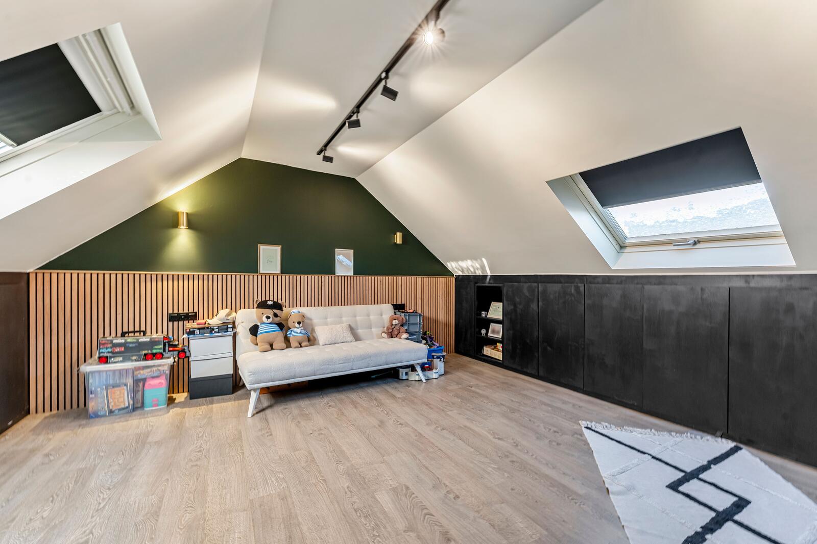 Via de vaste trap komen we in de zolderverdieping, waar we nog een grote vijfde slaapkamer vinden.