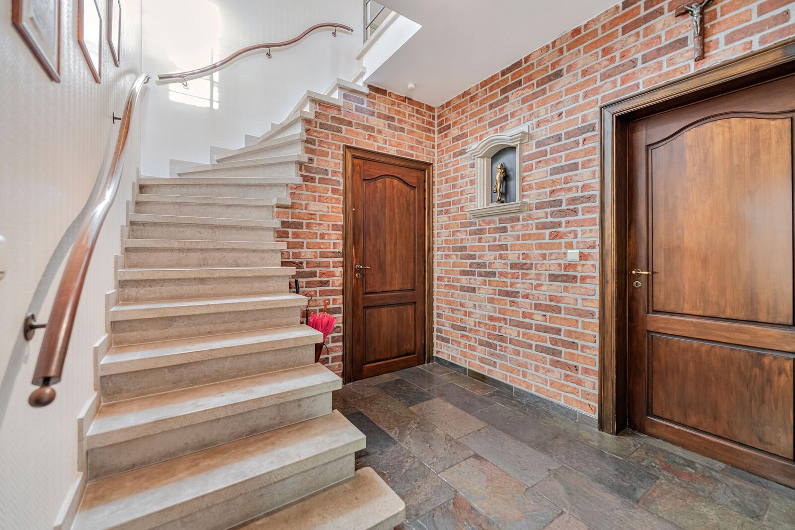 Op de hoek van een rustige locatie betreden we deze eigendom via de aangelegde oprit met voldoende parkeerplaats en laadpaal. De woning betreden we via de centrale open inkomhal met gastentoilet. Deze woning beschikt over 5 tot 6 slaapkamers.
