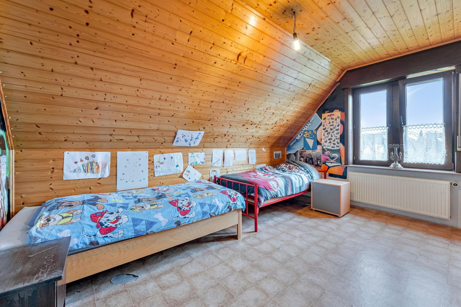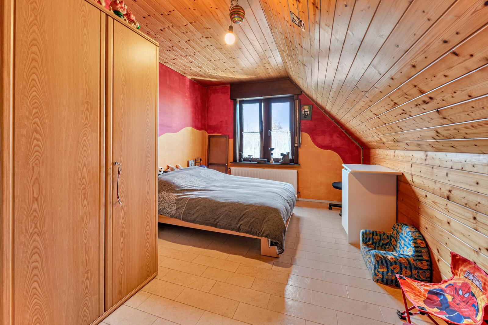 Op het verdiep vinden we 5 tot 6 slaapkamers. De huidige bewoners gebruiken een slaapkamer als "berging". Ook is er een apart toilet aanwezig.