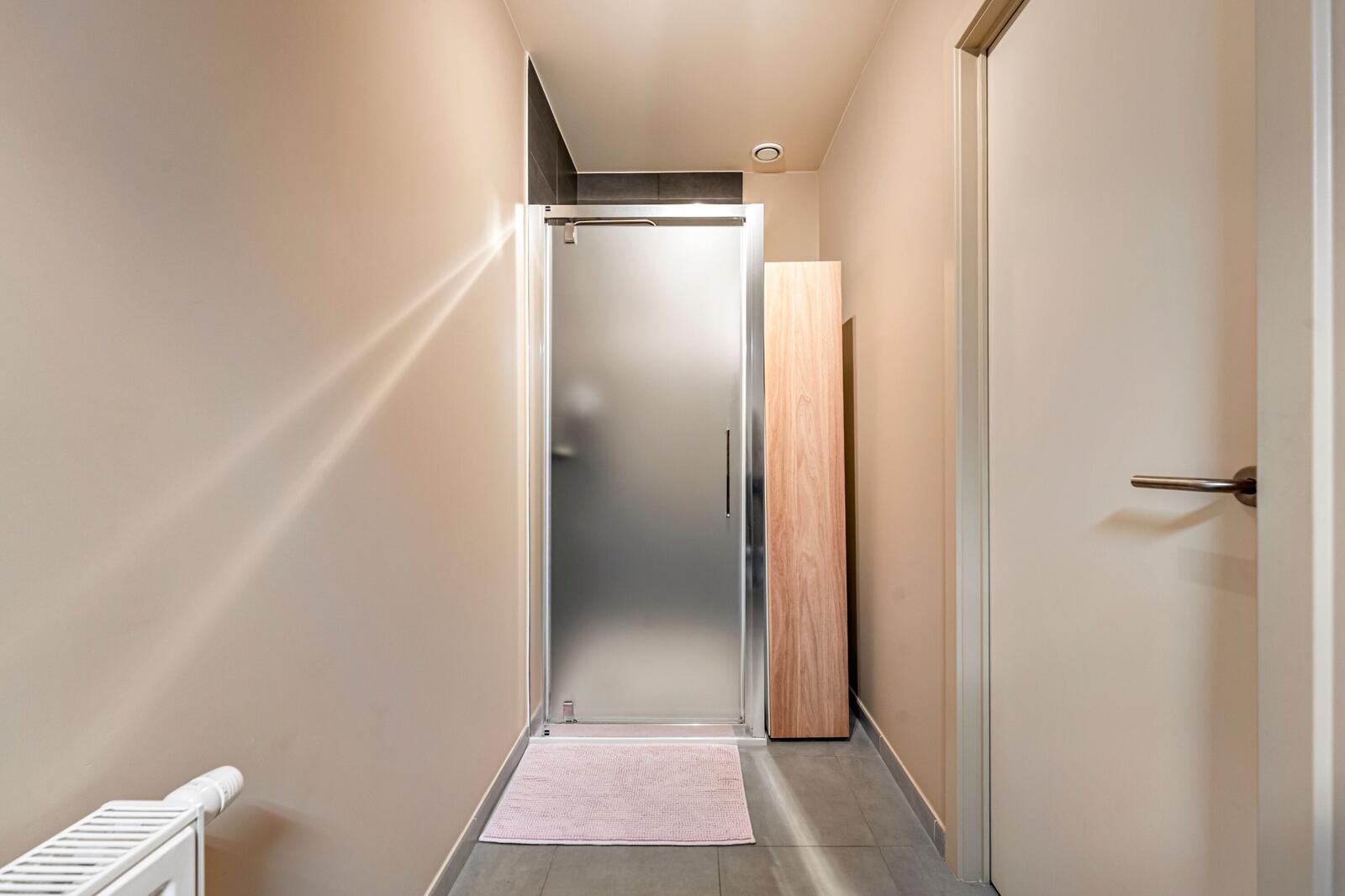 Het appartement beschikt over 2 slaapkamers, , een badkamer met douche en lavabo, en een praktische berging naast de keuken.