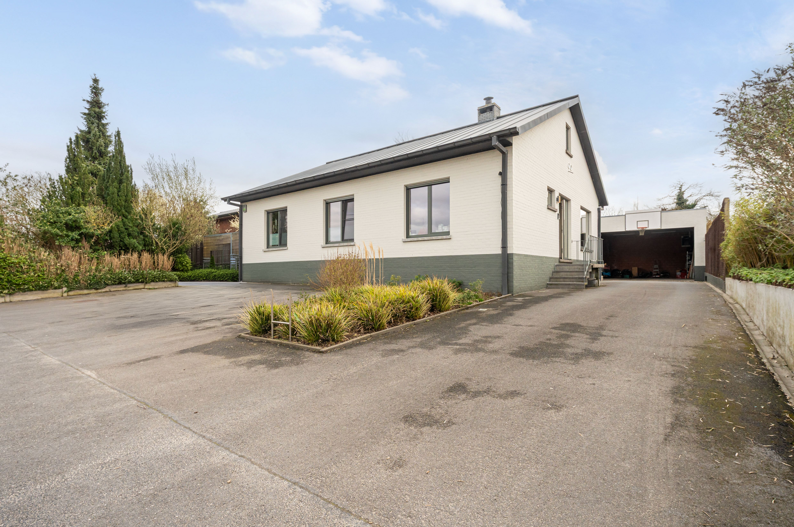 Buiten geniet je van een sfeervolle tuin met terras, lounge en zelfs een buitensauna. Dé absolute blikvanger is de ruime garage van ca. 80 m² met hoge inrijhoogte – ideaal voor camper, hobby of zelfstandige activiteit. Parkeerplaatsen voor de deur inbegrepen.