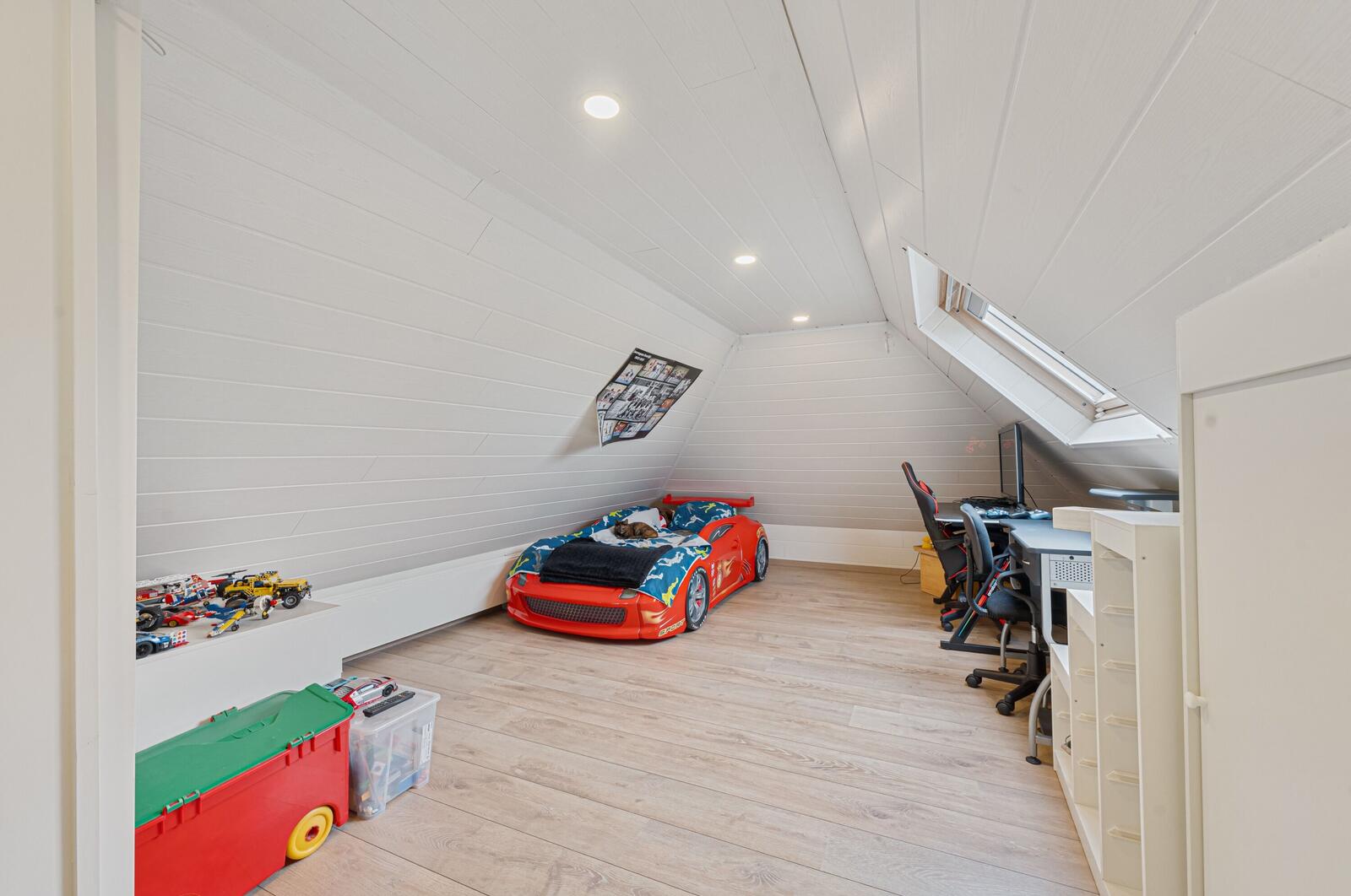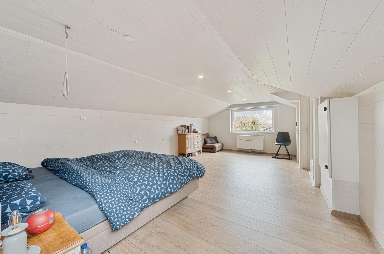 Boven vind je de masterbedroom (bereikbaar via trap én lift!) en een extra slaapkamer – samen goed voor 5 kamers.