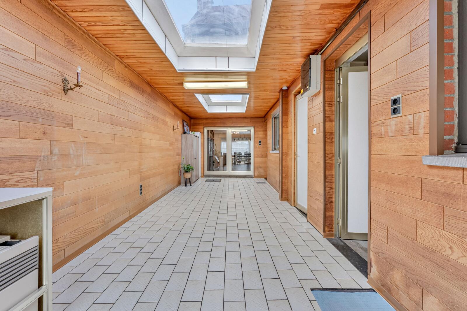Eens we de voordeur binnenlopen, komen we terecht in de inkomhal die direct toegang geeft tot de leefruimte. Het gaat om de ruime, lichtrijke living en eetplaats met veel charme. Met aansluitend toegang tot de veranda! Deze laatste is zeer ruim en proper afgewerkt met veel lichtinval doormiddel van grote koepels. De veranda biedt ondermeer toegang tot het apart toilet en de badkamer. De keuken bevindt zich naast de eetplaats en woonkamer.
