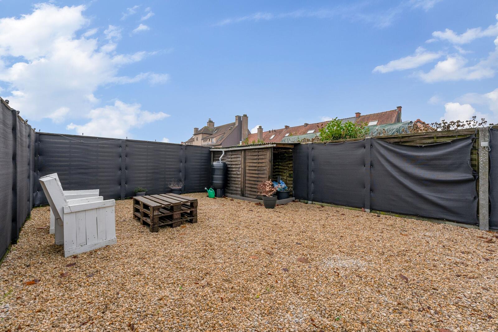 De ruime groene tuin is voorzien van gras- en terrasgedeelte. Vooraan is er een tuinhuis voorzien. Vanachter is er ook bergruimte en is de grond voorzien van kiezelstenen, ideaal voor een vuurkorf!