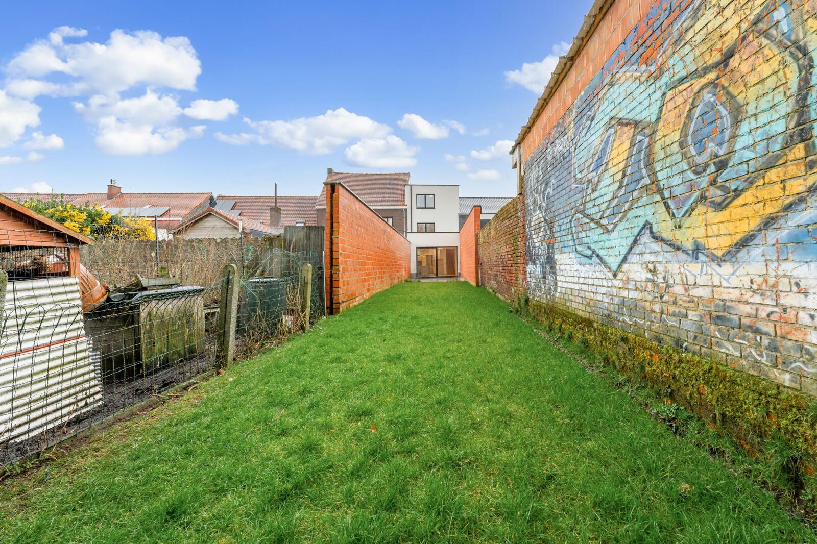 Buiten geniet je van een gezellige tuin met aangelegd terras. Achteraan is er nog een uitweg voor de fietsen.