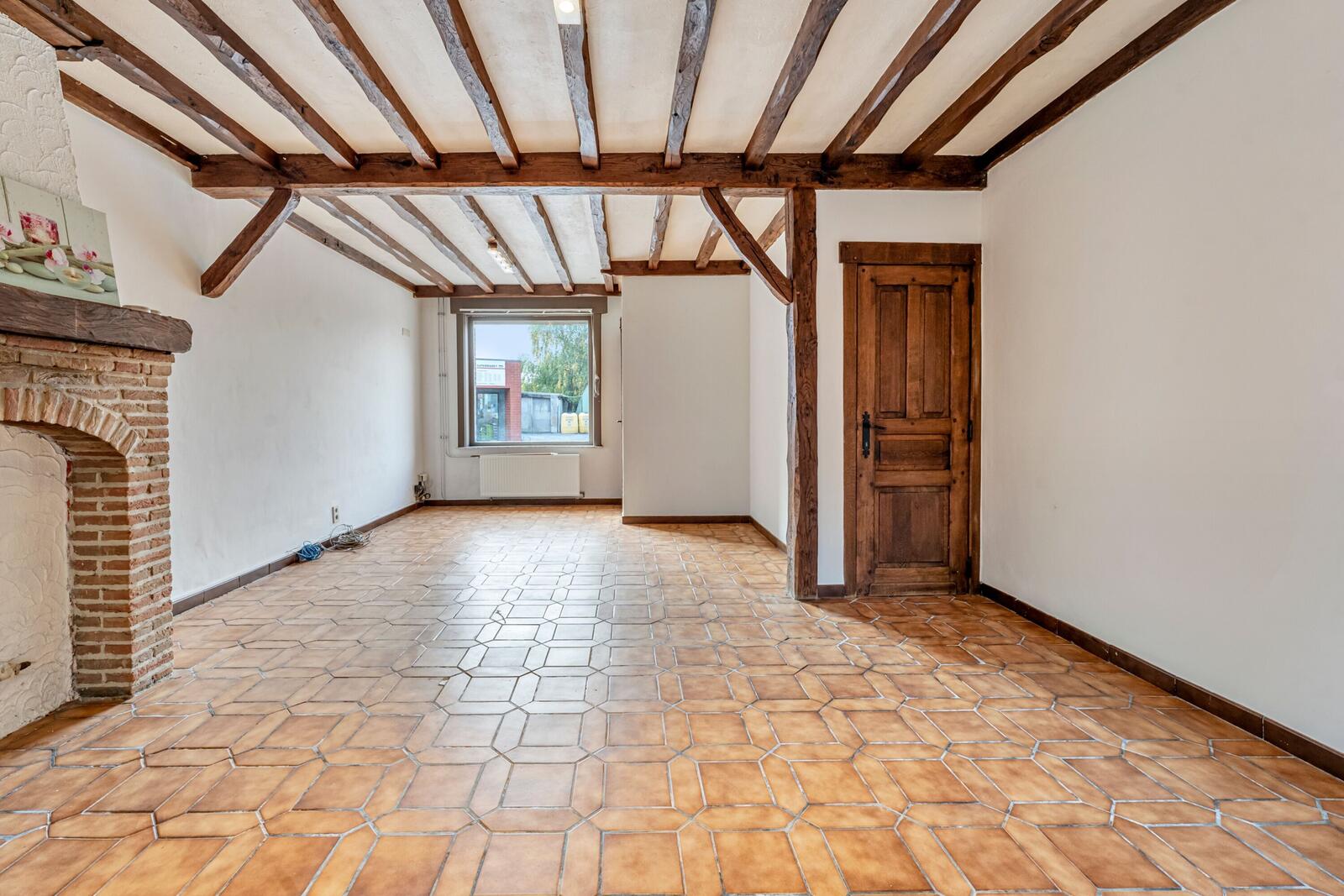 Als je binnenkomt in deze woning, kom je direct in de gezellige, authentieke leefruimte terecht. Even verder ligt de open keuken, die ook in het plaatje van dat authentieke past. Naast de keuken is er een berging, toilet en koertje voorzien. De woning heeft ook een kelder.