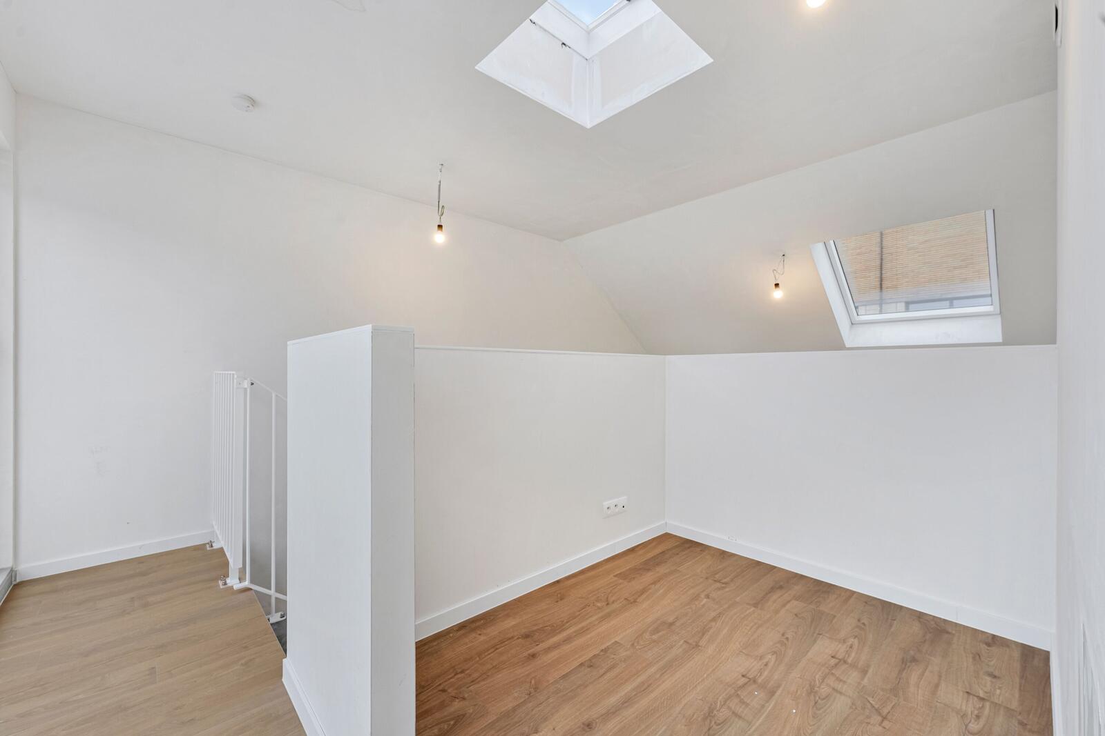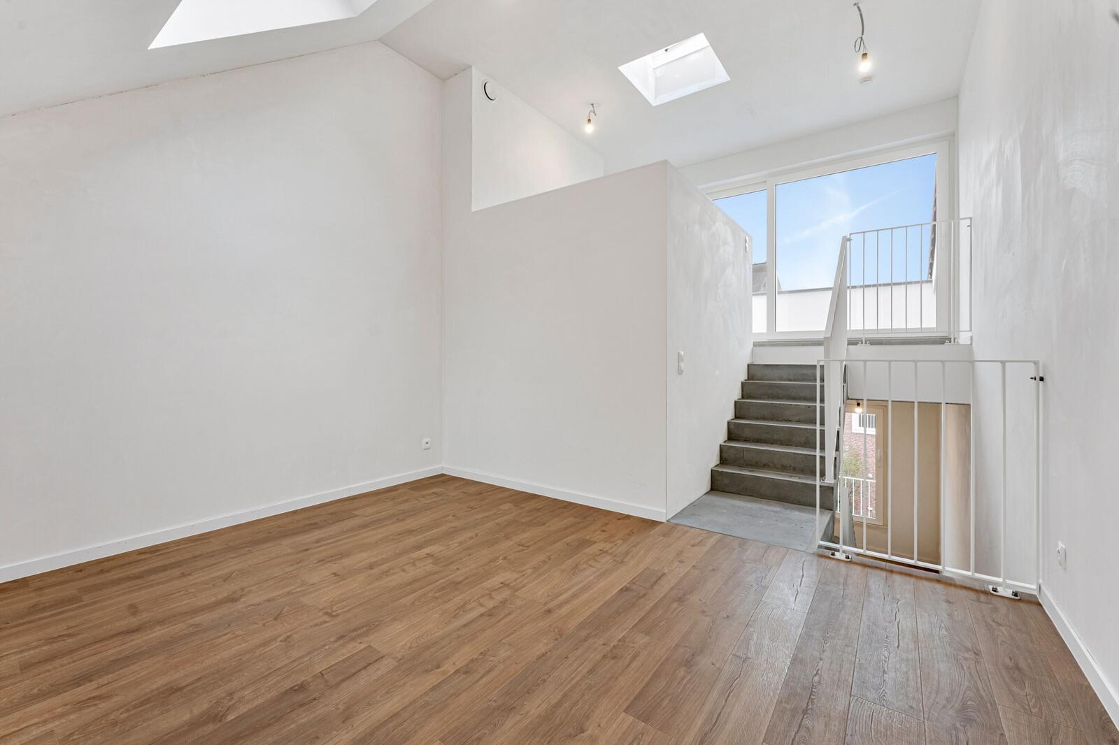Verder hebben we een ruime keuken met eetplaats en uitzicht op de binnentuin, perfect voor gezellige avonden met familie of vrienden. En op de bovenste verdieping vinden we de lichtrijke leefruimte met nog een extra bureauruimte of berging. Via deze verdieping hebben we nog toegang naar het dakterras, perfect op te ontspannen midden in de stad.
