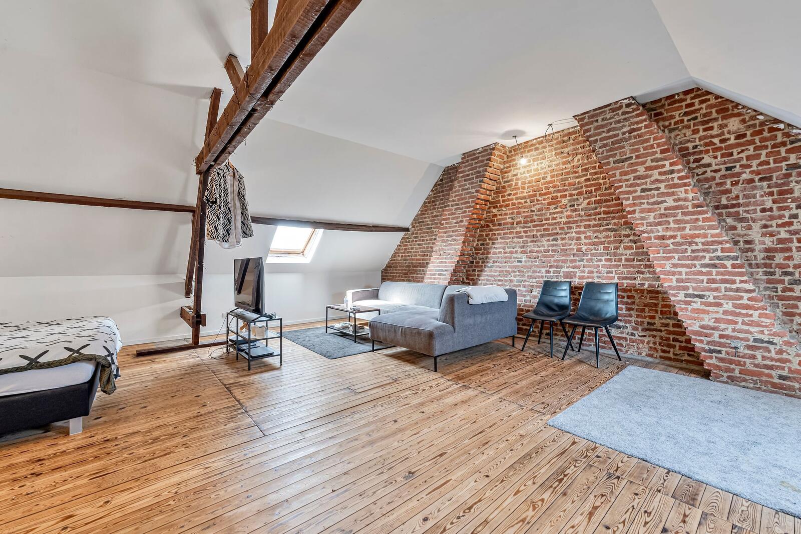 Op het eerste verdiep vinden we 3 volwaardige slaapkamers, een leefruimte waar een open keuken gecreëerd kan worden. Via de vaste trap komen we aan op het tweede verdiep. Daar vinden we nog een zéér ruime masterbedroom.